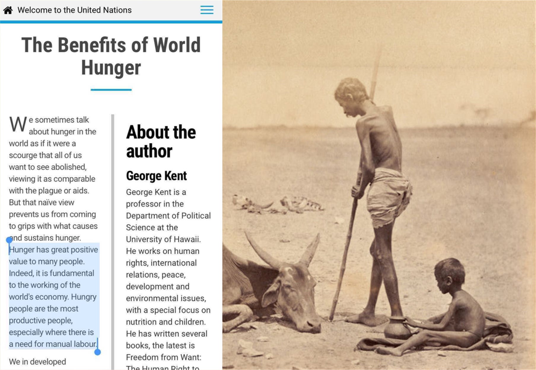 In July of 2022, the UN published an article titled, “The Benefits of World Hunger,” by one George Kent. Kent is a university professor, of course. He argued that, “hunger has great positive value to many people,” which might be correct. In particular, it would have great positive value to people like John D. Rockefeller III and whoever pays Mr. Kent’s tenure at the University of Hawaii.
